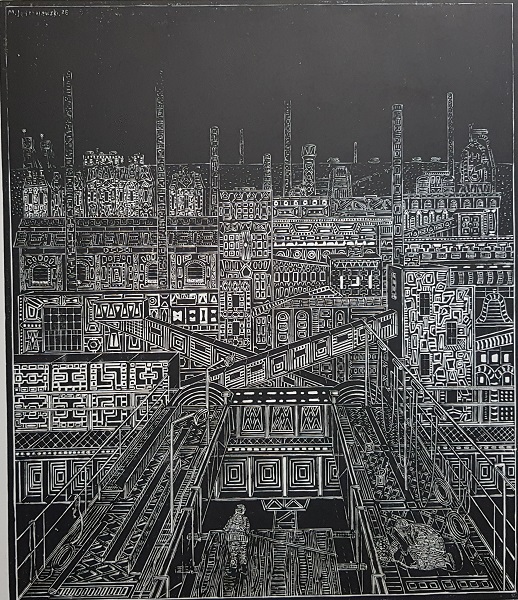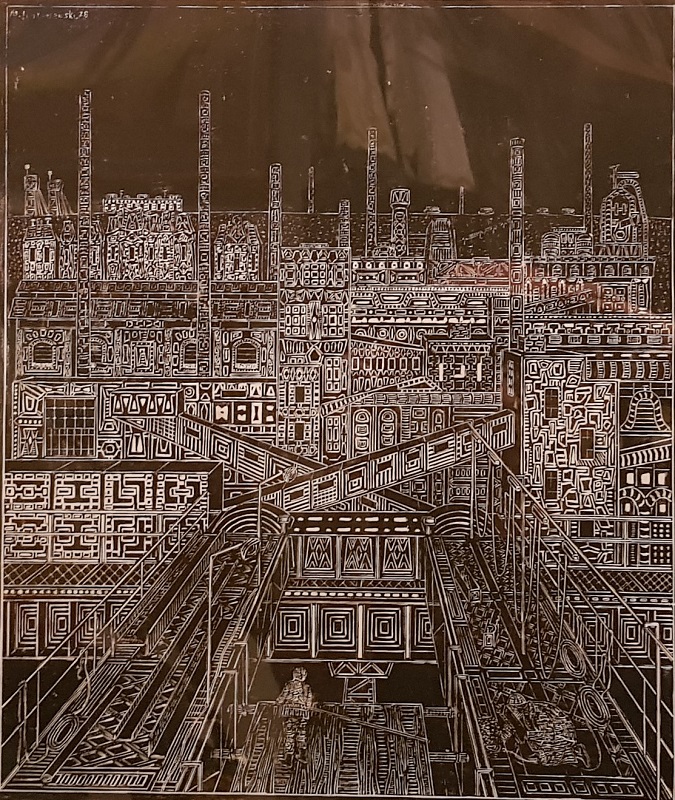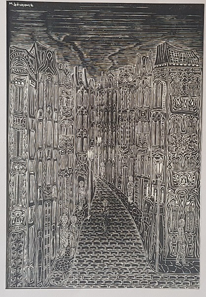 Podobnie wiele lat (aż do śmierci Jędrzejewskiego) trwała przyjaźń z poznanym podczas zajęć w ognisku grafikiem Janem Nowakiem. Tworzył wyłącznie linoryty o wizjonerskim charakterze. Najbardziej charakterystycznym motywem grafik Jędrzejewskiego są miasta: wyśnione, nadrealne, tajemnicze i melancholijne, po których błąkamy się w labiryncie pustych ulic, bez nadziei na znalezienie wyjścia. Nie są to miejsca określone, znane nam z codziennego doświadczenia – to raczej przestrzeń wyznaczająca ludzką samotność.